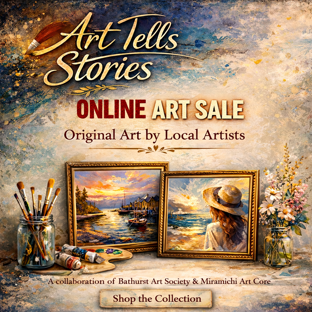 Art Tells Stories is a collaborative initiative between the Bathurst Art Society and the Miramichi Art Core, bringing together more than twenty visual artists to create a lasting visual history of two northern New Brunswick communities. Through annual Plein Air Events alternating between Bathurst and Miramichi, educational workshops in a variety of mediums, and themed exhibitions each year, the group celebrates the historic character and creative spirit of both regions. Artists interested in participating are encouraged to join either organization and register online.